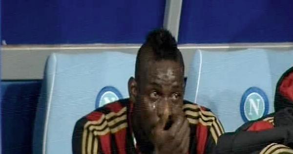 Le lacrime di Balotelli in panchina dopo il ko del Milan a Napoli