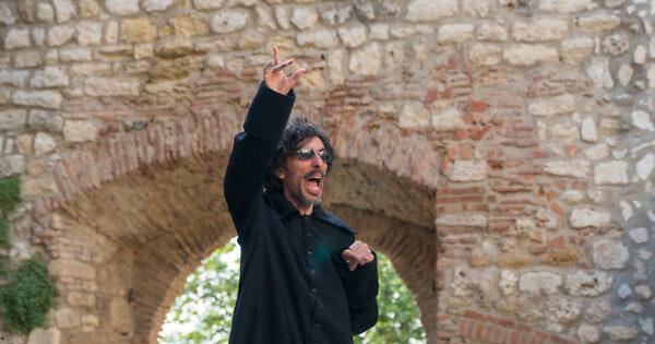 La tragedia di Eschilo inizia qui, con l’esercito argivo alle porte di Tebe: per ciascuna delle 7 porte un guerriero terribile e un altrettanto terribile guardiano. Chi avrà la meglio?