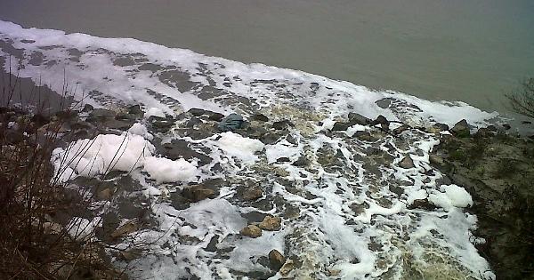 Schiuma bianca nel canale Pozzuolo