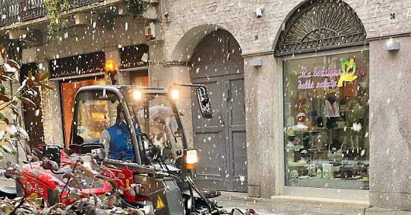 CREMONA (2 dicembre 2020) - La nevicata di questa mattina ha fatto scattare in città il piano neve, come mezzi e uomini in azione per mettere in sicurezza strade e marciapiedi. Il tutto coordinato da Paglia e Bonini dalla sala operativa di Aem.