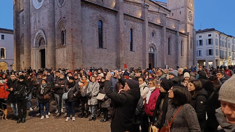 Don Attilio Premoli vicario generale della diocesi ha letto il messaggio del vescovo Daniele Gianotti. «La basilica di Santa Maria della Croce è stata edificata nel luogo dove il marito colpì a morte la moglie Caterina degli Uberti. A questa violenza rispose l’apparizione della Vergine Maria. Questo miracolo ci dice da che parte sta Dio: è vicino alle vittime innocenti porta con loro il peso della violenza e del sopruso. Chi crede in lui non può che stare dalla stessa parte».