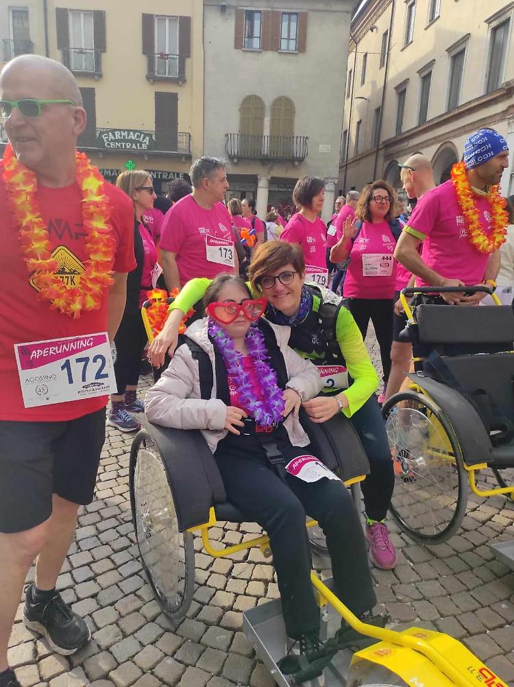 Tra i suoi tratti caratteristici ha i movimenti stereotipati delle mani: c'è chi le batte, chi le porta alla bocca e chi mima un lavaggio continuo. Da anni il gruppo Aperunning sostiene l’associazione, promuovendo raduni podistici di questo tipo, caratterizzati dalle t-shirt rosa da gara che vengono distribuite agli iscritti. Un fondamentale lavoro tecnico e organizzativo che permette di garantire lo svolgimento in sicurezza della manifestazione.