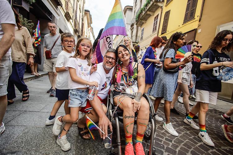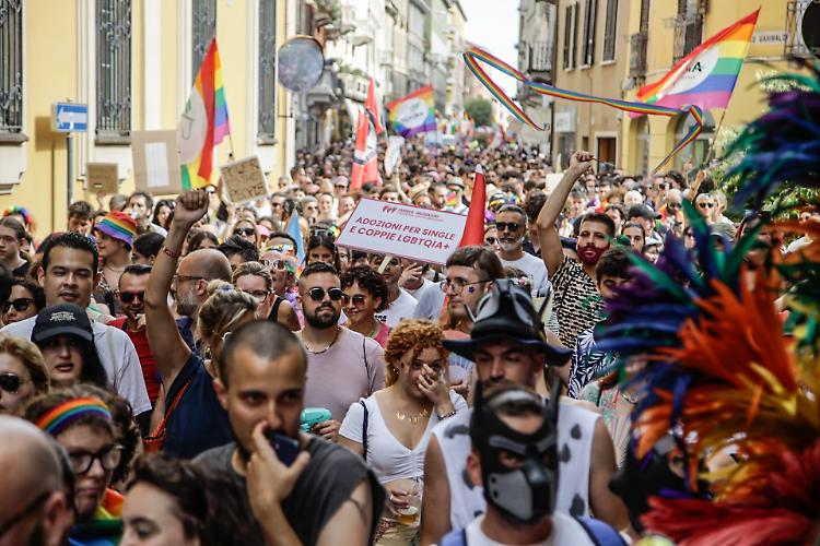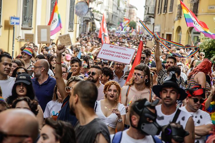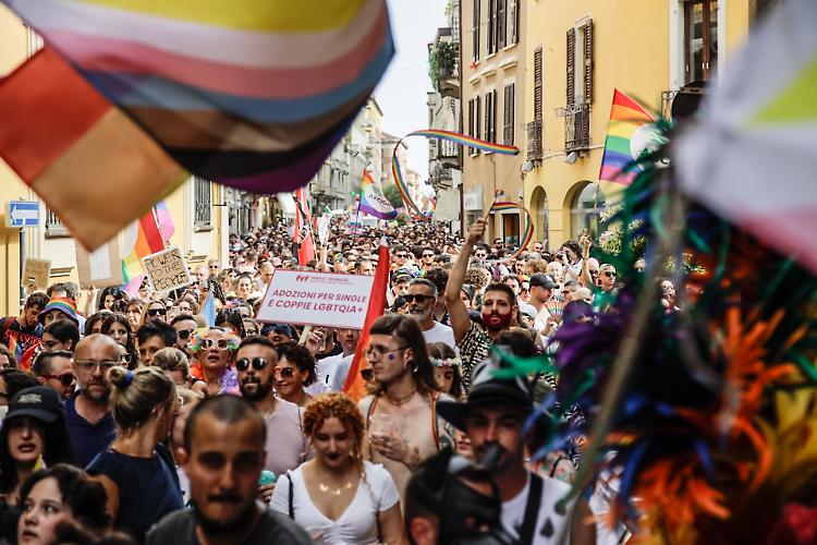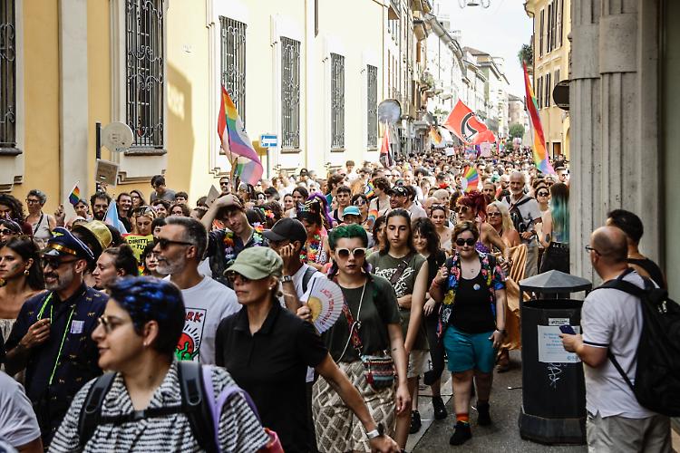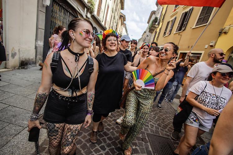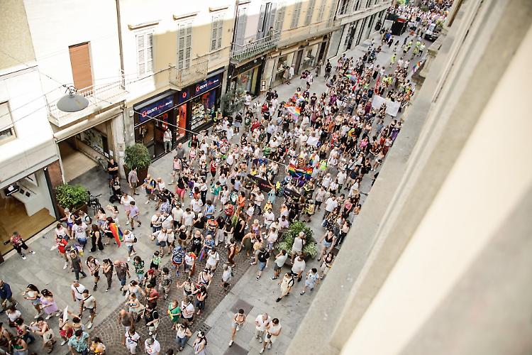 CREMONA - Una folla festante e coloratissima ha sfilato per il centro seguendo un doppio anello che ha avuto come fulcro piazza Stradivari. In piazza migliaia di cremonesi e visitatori da fuori città incolonnati dietro il carro principale dal quale risuonavano le note di Raffaella Carrà e altri inni della comunità Lgbtq+. A metà del serpentone un altro carro, più piccolo seguito dalle bandiere di Arcigay e delle famiglie arcobaleno. Una manifestazione gioiosa e colorata che ha attraversato la città senza intoppi, tra gli applausi di chi, incuriosito dalla musica, si affacciava alle finestre.