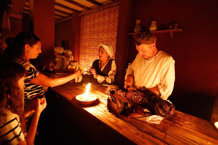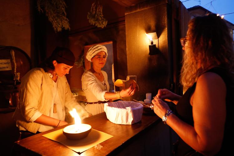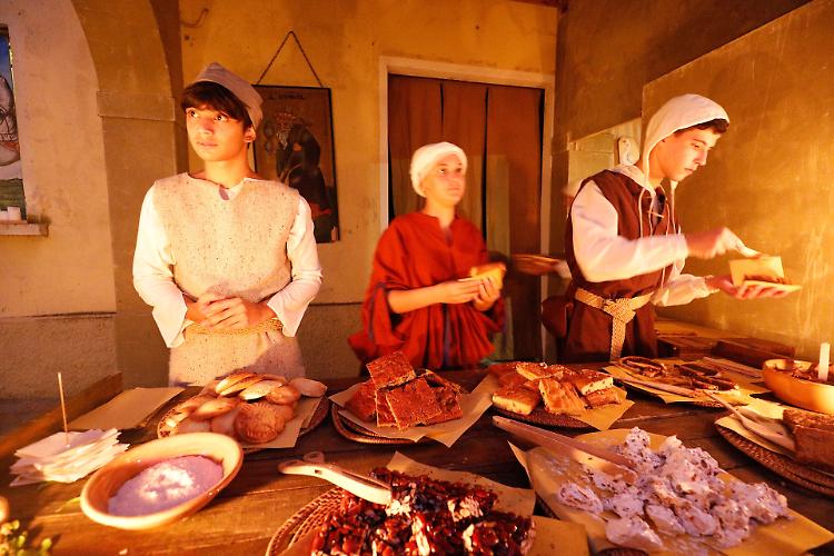 Mentre lo spettacolo andava in scena, le taverne accoglievano centinaia di commensali conquistati dai menù medievali e ammaliati dai racconti degli speziali, dei maestri di arte tintoria o dei produttori di candele.