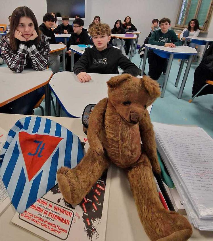 Fare esperienza e testimoniare e così Alessandra Fiori, docente della media Virgilio, ha aperto «aperto la lezione facendo ascoltare il famoso discorso di Liliana Segre al parlamento europeo. Poi ho letto l'articolo che scrissi al tempo della mia collaborazione con il dipartimento di storia all'università di Pavia per la rivista Triangolo rosso, che raccontava della lezione tenuta dal reduce dal compo di sterminio di Flossemburg Ferruccio Belli. Da ultimo ho mostrato l’orso trovato dal nonno nel campo di concentramento tedesco di Schweinfurth. Stupore, silenzio, commozione».