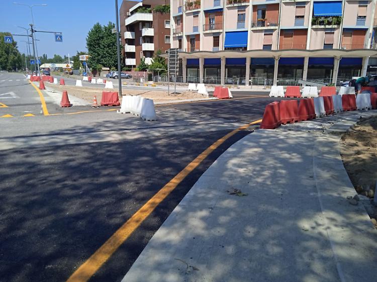 Dopo la pausa estiva, i lavori riprenderanno, tenendo conto delle varianti progettuali approvate, che prevedono ulteriori interventi a favore della sicurezza per tutte le tipologie di utenti. Tra questi interventi figurano la rimozione di tutti i 40 pali in calcestruzzo che sorreggevano i cavi della vecchia linea della filotramvia (mentre inizialmente era prevista la bonifica solo di 16 di essi), la modifica dell'aiuola di ingresso nella tangenziale lato via Eridano, l'implementazione della protezione della pista ciclabile sul lato del Biba Bar attraverso il suo allargamento e la realizzazione di una nuova canaletta per lo smaltimento delle acque meteoriche sul tratto stradale di Viale Po, che collega Largo Moreni al ponte, garantendo maggiore sicurezza alle attività economiche operanti sul lato destro in uscita dalla città.