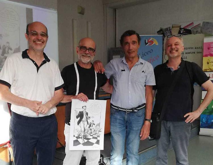 Per i diplomati dell’anno scolastico 2023/2024 Agnoli, complice l’amicizia con Michele Ginevra, hanno ricevuto oltre al diploma di maturità, una stampa realizzata da Giovanni Freghieri, disegnatore di Dylan Dog, ma anche di Martin Mystère, Zagor, Tex, Morgan. «Freghieri ha realizzato la tavola in sole 250 copie, dedicate ai nostri maturi — afferma con un pizzico di orgoglio Agnoli —. È un modo per lasciar loro un ricordo che crediamo prezioso del loro percorso scolastico, al di là della votazione ottenuta all’esame».