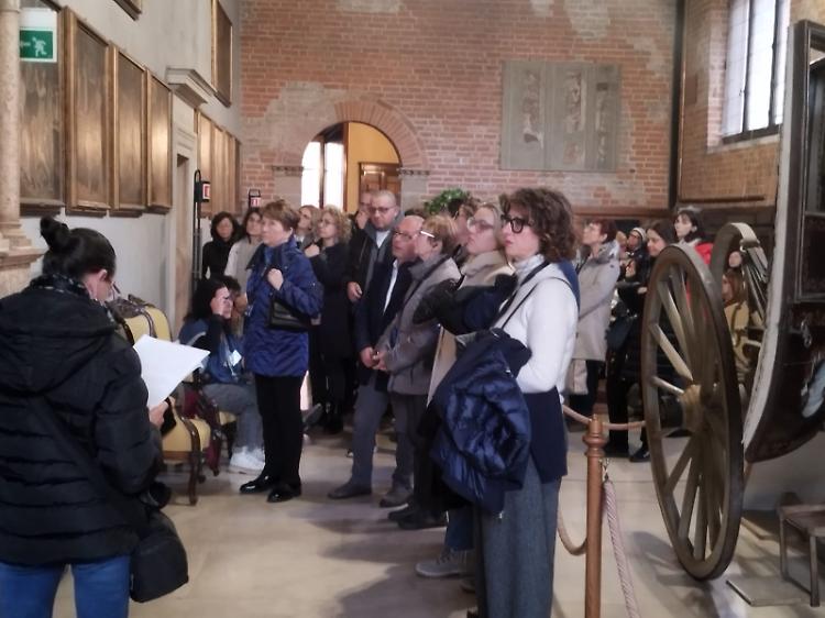 «Il cuore del progetto ArteAssieme sono gli incontri preparatori, che si svolgono nel corso di diversi mesi. Ogni settimana, il gruppo si riunisce per preparare, da un lato, la parte storica e artistica, in questo caso i capolavori di Palazzo Comunale, e dall’altro per lavorare sulle testimonianze personali, raccontando la propria esperienza di salute mentale e il percorso di recupero vissuto», spiega Pezzone. «Quando parlerò della Carrozza Crotti e delle strade di Cremona del 1700, condividerò anche il mio cammino personale, parlando delle ‘buche’ che ho affrontato, quelle dell’animo», racconta Maria, una delle guide per un giorno.