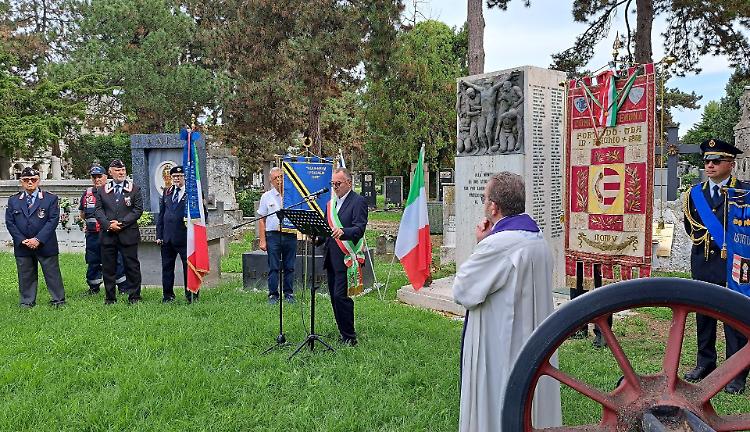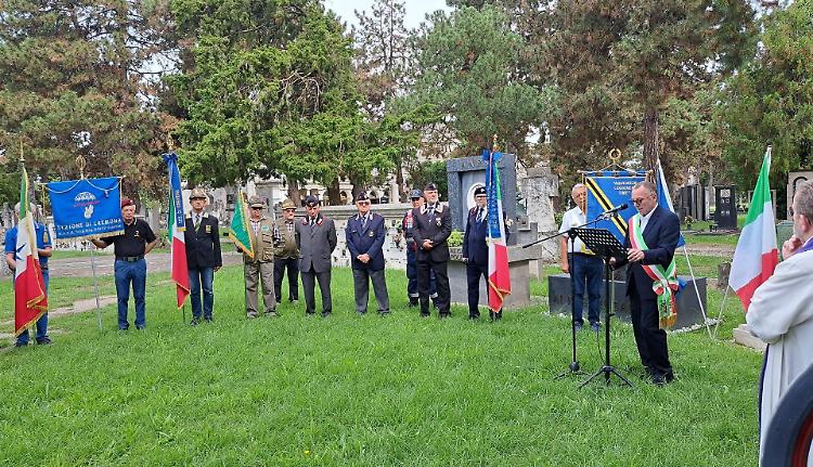 Il primo momento si è tenuto al Civico Cimitero, presso il Monumento ai Caduti, con l’intervento del presidente del Consiglio comunale Luciano Pizzetti e la benedizione impartita da don Achille Bolli. Nel suo discorso, Pizzetti ha ricordato come l’8 settembre sia stato “l’inizio della Liberazione dal nazifascismo, ma anche della feroce occupazione tedesca con il contributo dei fascisti italiani”, sottolineando al tempo stesso la nascita della Resistenza, della nuova classe dirigente repubblicana e del rapporto fecondo tra esercito e popolo. Ha quindi ribadito che il significato di quella data “ha come orizzonte e come fine la libertà e la democrazia, oggi minacciate dai processi di sgretolamento e dalle trasformazioni sociali prodotte da una globalizzazione senza regole”.