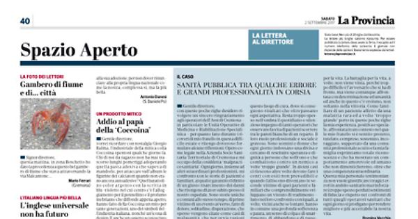con queste poche righe desidero rivolgere un sincero ringraziamento agli operatori dell’Asst di Cremona – in particolare le Unità Operative di Medicina e Riabilitazione Specialistica – per quanto fatto durante i ricoveri di mio fratello in questa difficile estate e ritengo doveroso formulare alcune riflessioni. Opero come legale nella Azienda Socio Sanitaria Territoriale di Cremona e mi occupo della cosiddetta ‘malpractice sanitaria’.