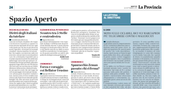 negli ultimi anni il comportamento di noi cremonesi dimostra una riduzione netta del senso civico. Io abito nel quartiere Po, perciò parlo di quello che vedo quotidianamente, ma lo stesso avviene in ogni parte della città, dove, ad esempio, in pieno centro ciclisti viaggiano sui marciapiedi e ben si guardano dal fermarsi incrociando pedoni, anzi sono questi ultimi che si scansano!