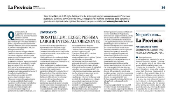 Questa è un’ulteriore grave limitazione della libertà di scelta dei cittadini, è potenzialmente anticostituzionale ed era alla fine l’unica richiesta che le forze di centrosinistra esterne al Pd avevano chiesto come condizione per poter ‘trangugiare’ il resto della legge. Così si è espresso Bersani in occasione della sua recentissima venuta a Cremona.