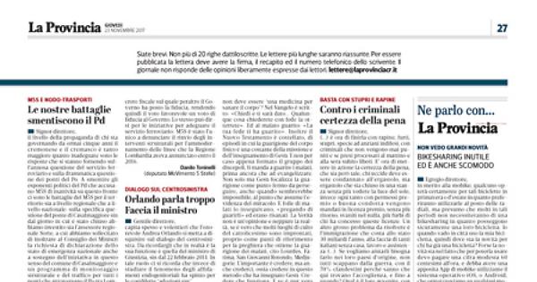 il livello della propaganda di chi sta governando da ormai cinque anni il cremonese e il cremasco è tanto maggiore quanto inadeguate sono le risposte che si stanno fornendo sull’annosa questione del servizio ferroviario e sulla drammatica questione dei ponti del Po. A smentire gli esponenti politici del Pd che accusano M5S di inattività su questo fronte ci sono le battaglie del M5S per il territorio sia a livello regionale che a livello nazionale: sulla specifica questione del ponte di Casalmaggiore sin dal giorno in cui è stato chiuso abbiamo investito sia l’assessore regionale Sorte, a cui abbiamo sollecitato di inoltrare al Consiglio dei Ministri la richiesta di dichiarazione dello stato di emergenza nazionale anche a sostegno dell’iniziativa in questo senso del comune di Casalmaggiore e un programma di monitoraggio strutturale e del traffico per tutti i ponti che attraversano il Po tra Lombardia e Emilia Romagna. A livello nazionale abbiamo presentato un’apposita risoluzione con il nostro deputato Zolezzi al Ministro Delrio per l’istituzione di un tavolo nazionale con gli enti coinvolti. È una menzogna vergognosa affermare che il Movimento Cinque Stelle sia contrario ai ponti del Po solo perché ha votato contro la scandalosa raccolta di marchette elettorali del decreto fiscale sul quale peraltro il Governo ha posto la fiducia, rendendo quindi il voto favorevole un voto di fiducia al Governo. Lo stesso può dirsi per le iniziative per adeguare il servizio ferroviario: M5S è stato l’unico a denunciare il rinvio degli interventi strutturali per l’ammodernamento delle linee che la Regione Lombardia aveva annunciato entro il 2016.