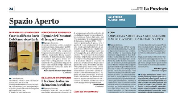 la recente dichiarazione del sindaco Galimberti intervistato circa la possibile scelta della collega Bonaldi di Crema sulla revoca della cittadinanza onoraria a Benito Mussolini, in cui afferma che «episodi recenti dicono che stanno montando comportamenti di una destra estrema violenta», resta espressione di libero pensiero ma palesemente altrettanto non libera da una, non velata, posizione politico-culturale indirizzata e condizionata nell’identificazione del fenomeno violenza sociale. Limite. Confusione. Necessario avere un dato di realtà oggettivabile e non solo un ideale di realtà proiettabile.