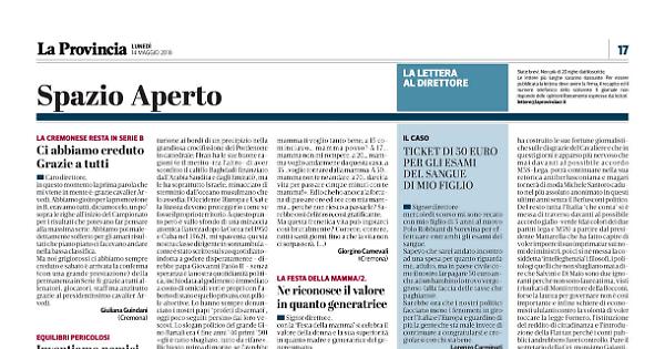 forse ci eravamo tutti messi in testa che si sarebbe potuto festeggiare così, riducendola ad una sola giornata, soprattutto liquidandola in quattroquattrotto, la festa in onore delle mamme? Che sciagurati che siamo diventati! Ravvediamoci tutti, nessuno escluso, e in fretta, e una volta per tutte: la festa della mamma deve essere 365 volte l’anno. Un giorno l’anno mi sembra veramente nulla a confronto di quello che una madre fa ed ha fatto per i propri figlioli.