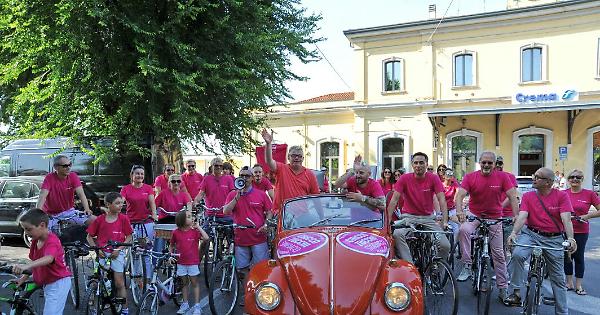 CREMA - Una biciclettata fucsia per le vie di Crema, partita dal piazzale della stazione ferroviaria, per sostenere il candidato sindaco Chicco Zucchi, che domenica 25 giugno sfiderà Stefania Bonaldi nel ballottaggio delle elezioni Amministrative 2017. Un sabato 17 giugno 'colorato' per i sostenitori di Zucchi.