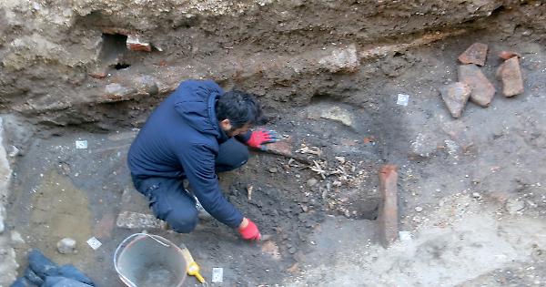 CREMONA (14 febbraio 2020) - Antenati dell’Alto Medioevo, sepolti per almeno mille anni a un passo dal Torrazzo, sotto una copertura a doppio spiovente, a un metro e mezzo di profondità. A riportarne alla luce i resti, questa mattina poco dopo le 9, è stato il team di archeologi della Soprintendenza guidato dal cremonese Gianluca Mete. Rimossi i laterizi romani di reimpiego, sono spuntati frammenti di ossa di persone diverse e, poi, anche uno scheletro quasi intatto.