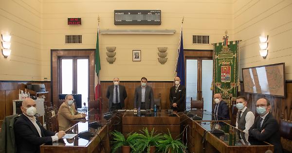 CREMONA (22 marzo 2021) - Oggi, nella giornata dedicata alla celebrazione mondiale della risorsa idrica, è stata firmata dal presidente di Padania Acque Claudio Bodini e il Presidente dell’Ufficio d’Ambito Territoriale Ottimale della Provincia di Cremona (ATO) Stefano Belli Franzini, la “Convenzione di gestione” tra l’Ufficio d’Ambito e il gestore unico del servizio idrico integrato cremonese che include il piano d’ambito approvato nell’assemblea di dicembre. La firma è avvenuta nella sede della Provincia di Cremona, nel rispetto delle limitazioni vigenti, alla presenza del Presidente della Provincia Paolo Mirko Signoroni, di Alessandro Lanfranchi, Stefano Ottolini e Giovanni Sala, rispettivamente Amministratore Delegato, Direttore Generale e Direttore Tecnico di Padania Acque, del Direttore dell’Ufficio d’Ambito della Provincia di Cremona Damiano Scaravaggi e di Giovanni Gagliardi, Consigliere provinciale delegato alle Società partecipate.