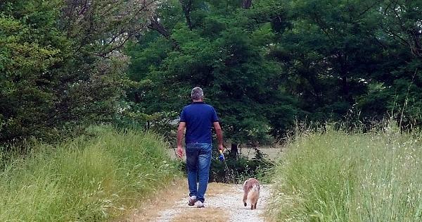 Un uomo a passeggio col cane