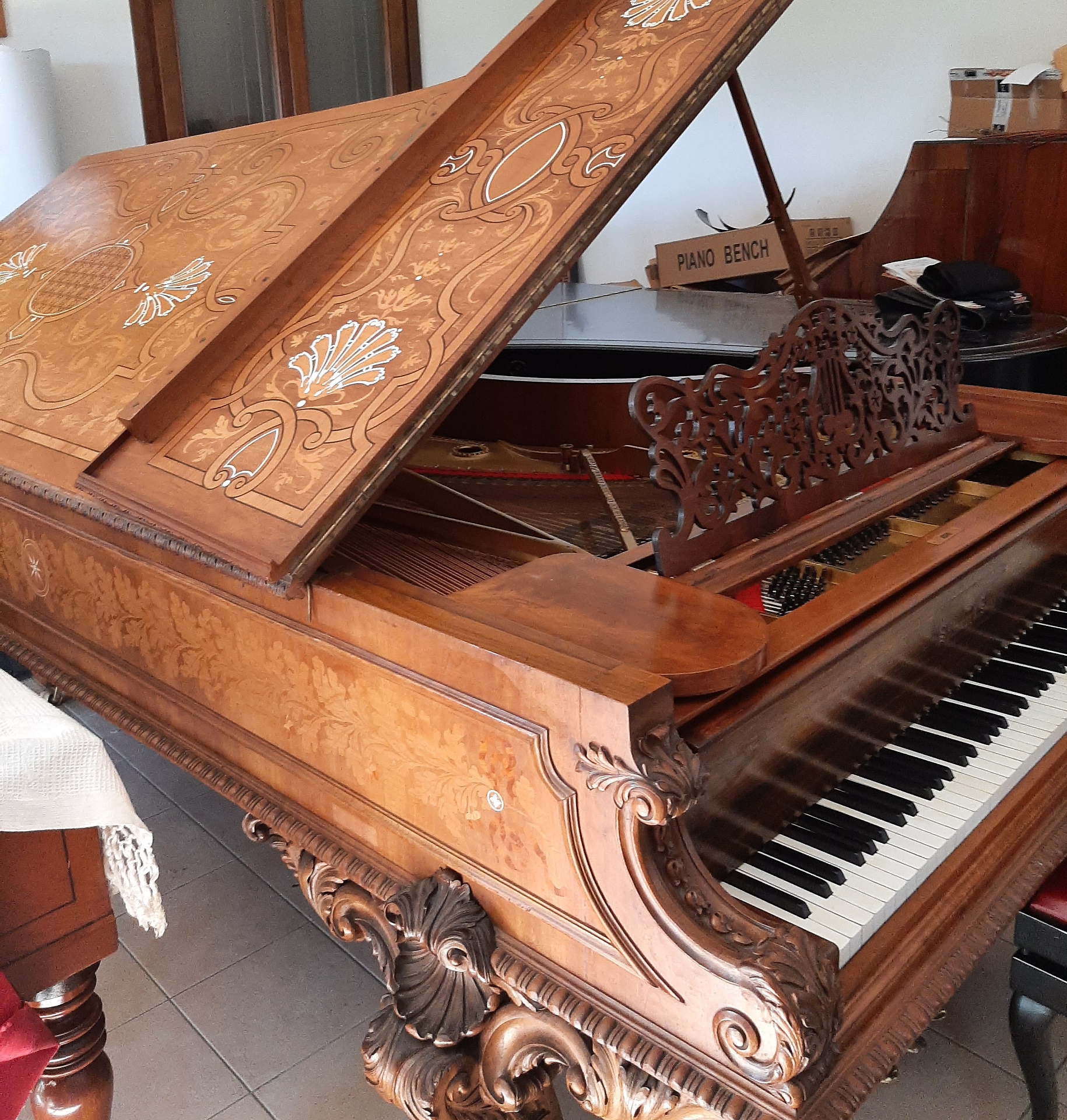 «Un modello unico nel suo genere. Apparteneva a un inglese, simpatizzante del fascismo, che ha fatto arredare in stile liberty la sua villa sulle alture torinesi, poi semi distrutta da un incendio e dove pare abbia girato un film Dario Argento, e ha voluto che anche il pianoforte fosse decorato, intarsiato in quel modo. È rispuntato in Liguria, in un albergo da ristrutturare. Io e il mio collega l’abbiamo riparato perché era in cattive condizioni».