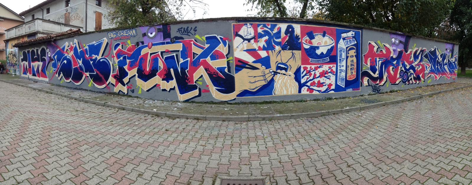 «Per rispondere devo fare qualche passo indietro. Una decina di anni fa incontrai questa crew, un gruppo di ragazzi molto attivo in città, con i quali nacque il progetto di una rivista auto-pubblicata, una fanzine. La intitolammo ‘Big Cream’, un omaggio in stile hip hop alla nostra città: era una vera e propria rivista specializzata, nata per diffondere anche qui il linguaggio delle arti urbane in città, dallo skate ai tatuaggi, dalla street art al rap. Ne uscirono quattro numeri, poi ci fu un po’ di dispersione. Quando ci siamo trovati a dieci anni di distanza abbiamo deciso di riprendere in mano il progetto: inizialmente pensavamo a un ‘numero 5’, poi abbiamo scelto di realizzare un libro per tenere traccia e mettere su carta quel che a volte sui muri resiste poche settimane. Per questo dobbiamo ringraziare anche Tommaso Giorgi e Serena Carpaneto di CrArT che ci hanno supportato in tutti gli aspetti per noi più ostici».