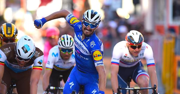 Si risolve con una bellissima volata lunga la 110ima edizione della Milano- Sanremo (291km): a braccia alzate, sul traguardo di via Roma, c'è il grande favorito della vigilia, il francese Julian Alaphilippe che trionfa (con una tattica perfetta nei 6km finali) davanti al belga Naesen, il polacco Kwiatkowski e Peter Sagan. Ottavo Vincenzo Nibali, campione uscente e migliore degli italiani Decimo Trentin, deludente Elia Viviani. Un plauso alla lunga e coraggiosa fuga di 10 corridori, di cui 6 italiani: ultimo a mollare, dopo 265 km, è Masnada.