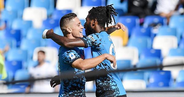 AMSTERDAM (OLANDA) - Un Napoli sontuoso domina e stravince in rimonta per 6-1 sul campo dell'Ajax, avvicinandosi così a grandi passi verso il passaggio del turno. Forte di questi 3 punti, la squadra di Spalletti vola in testa a punteggio pieno a quota 9 e si avvicina così agli ottavi di finale. Le due squadre torneranno ad affrontarsi tra 8 giorni a campi invertiti. Decisive le reti siglate già nel primo tempo da Raspadori, Di Lorenzo e Zielinski, che indirizzano subito il match dopo lo svantaggio iniziale. Sono infatti i lancieri a passare al 9'. Bergwijn aggira la difesa, entra in area e serve all'indietro Taylor che calcia di prima intenzione addosso a Kudus che infila Meret per l'1-0 grazie a una deviazione fortunosa. Il pari è quasi immediato e arriva al 18'. Dopo un fraseggio tutto di prima, Olivera fugge sulla sinistra e mette in mezzo una palla al bacio sulla testa di Raspadori che insacca nell'angolino. I partenopei giocano meglio e al 33' completano la rimonta con capitan Di Lorenzo, che supera di testa Pasveer sfruttando al meglio un cross dalla destra di Kvaratskhelia. Il tris arriva al 45', quando la difesa di casa lascia un'autostrada a Zielinski che si inserisce centralmente dopo un assist di Anguissa, si invola verso la porta e infila il portiere con il mancino per il 3-1 con cui si va all'intervallo. Al 2' della ripresa arriva subito il poker. Pasveer sbaglia a impostare, Anguissa intercetta e serve Raspadori che calcia di prima con il destro infilando il portiere per il 4-1. Al 18', Kvaratskhelia corona una grande prestazione ricevendo da Raspadori dopo un uno-due e superando Pasveer per il 5-1. Al 28' gli olandesi rimangono in 10 per il doppio giallo inflitto a Tadic. Al 36' gli uomini di Spalletti firmano il sesto e ultimo gol del loro match, quando Simeone batte Pasveer con il destro dopo un bell'assist di Ndombélé. Nel finale c'è ancora tempo per una traversa colpita dallo stesso Ndombélé, ma il punteggio non cambierà più. - foto Image - . xh9/gm/red 04-Ott-22 22:57