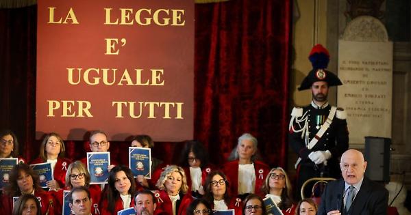 NAPOLI - "Tutte le opinioni sono benvenute, tutte le manifestazioni di dissenso, e ringrazio tutti per una manifestazione estremamente composta, sono il sale della democrazia, ma che si possa pensare che un ministro da 30 anni in magistratura e a tre anni alla guida dell'inchiesta sulle Brigate Rosse, che un ex magistrato possa avere come obiettivo l'umiliazione della magistratura alla quale è appartenuto, lo trovo particolarmente improprio". Lo ha detto il ministro della Giustizia Carlo Nordio durante l'inaugurazione dell'anno giudiziario a Napoli. "Vi pare che, avendo io fatto per 40 anni il pm per essere libero e indipendente, vorrebbe un pm sottoposto al potere esecutivo? Non avverrà mai, non in nome di questa riforma costituzionale", ha aggiunto mentre i magistrati dell'Anm erano già usciti dalla sala. Mentre i presenti hanno applaudito. "Ringrazio ancora una volta l'efficienza e operosità della magistratura. Su quest'ultima vorrei aggiungere due cose. Molte volte ho usato anche espressioni non del tutto in linea con la vulgata generale, però - ha spiegato - di una cosa mi sono sempre sentito orgoglioso, di affermare che è la sua operosità e la sua competenza. Tutte le volte che ho sentito dire che i magistrati lavorano poco o producono poco, ho avuto una sorta di senso di ribellione da magistrato all'epoca e come ministro. La seconda un po' più dolorosa è quella che qualcuno possa pensare che questa riforma costituzionale sia punitiva per la magistratura", ha concluso Nordio. . -Foto: Agenzia Fotogramma- xm9/fsc/red 25-Gen-25 12:49