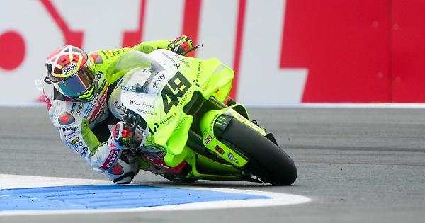 SACHSENRING (GERMANIA) - Fabio Di Giannantonio firma il miglior tempo nelle pre-qualifiche del Gran Premio di Germania, undicesimo appuntamento del Mondiale di MotoGP, in scena lungo il circuito del Sachsenring. Il pilota romano, in sella alla sua Ducati del VR46 Racing Team, ferma il cronometro a 1'19"071, riuscendo a mettersi alle spalle i fratelli Alex Marquez (Ducati Gresini, +0"337), "rigenerato" dopo la frattura scomposta del secondo metacarpo della mano sinistra rimediata ad Assen, e Marc Marquez (Ducati Lenovo, +0"390). Di Giannantonio ha "indovinato" la scelta di correre con la "morbida" davanti. Chiudono la top-5 odierna Fabio Quartararo (Yamaha, +0"453) e Pedro Acosta (Ktm, +0"489). Conquistano l'accesso diretto alla Q2 anche Franco Morbidelli (Ducati VR46 Racing Team), Marco Bezzecchi (Aprilia), Jack Miller (Yamaha), Francesco Bagnaia (nono con la sua Ducati Lenovo) e Brad Binder (Ktm). - foto Ipa Agency - . spf/pdm/red 11-Lug-25 16:27