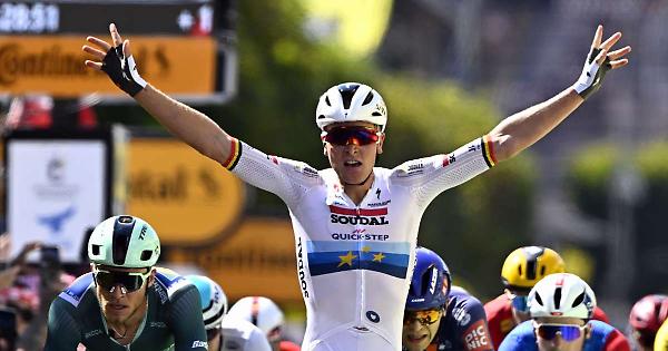 CHATEAUROUX (FRANCIA) - Tim Merlier beffa Jonathan Milan nella nona tappa del Tour de France 2025, la Chinon-Chateauroux di 174.1 km. Il belga della Soudal Quick-Step ha anticipato il velocista friulano della Lidl-Trek, terzo il belga Arnaud De Lie (Lotto). Sin dai primi chilometri Jonas Rickaert e Mathieu van der Poel, entrambi dell'Alpecin-Deceuninck, hanno deciso di animare la corsa: i due sono partiti in fuga guadagnando immediatamente due minuti, distacco poi aumentato col passare dei chilometri. Durante la prima parte di corsa la Lidl-Trek ha cercato squadre per poter ricucire lo strappo, soltanto nel finale il gruppo ha deciso di aumentare l'andatura: la clamorosa azione di Van der Poel si è esaurita soltanto a 900 metri dall'arrivo, nella volata finale Milan ha sfiorato il bis dopo la vittoria di ieri. Bis centrato invece dal campione d'Europa. Non cambia nulla dal punto di vista della classifica generale, lo sloveno Tadej Pogacar (Uae Emirates) resta in maglia gialla anche se perde un luogotenente come il portoghese Joao Almeida, costretto al ritiro. Domani si torna in strada per la decima frazione della Grande Boucle, la Ennezat-Mont Dore Puy de Sancy di 165,3 km. - Foto Ipa Agency - . pia/mc/red 13-Lug-25 17:10