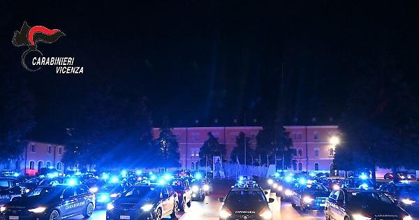 VICENZA - Vasta operazione dei Carabinieri di Vicenza su tutto il territorio nazionale, in particolare nel capoluogo berico e altre province del Veneto, province di Frosinone e Viterbo. Eseguita un'ordinanza di custodia cautelare in carcere nei confronti di 20 persone, finalizzata a disarticolare un'organizzazione criminale costituita da persone nigeriane e radicata a Vicenza. Nell'operazione, coordinata dalla Direzione distrettuale antimafia della Procura di Venezia, sono impegnati 300 carabinieri provenienti da tutta la regione, con il supporto dei reggimenti Lombardia ed Emilia Romagna, delle squadre di intervento speciale dei reggimenti 7^ Trentino Alto Adige , 13^ Friuli Venezia Giulia e del 4^ battaglione Veneto, aliquota pronto intervento del provinciale di Padova, unità cinofile antidroga ed un velivolo del 14^ elinucleo di Belluno. Oltre alle misure cautelari personali sono in atto decine di perquisizioni domiciliari. - foto ufficio stampa Carabinieri - . vbo/com 18-Nov-25 08:46