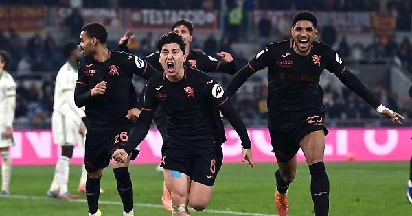 ROMA - Il Torino batte la Roma per 3-2 e vola ai quarti di finale di Coppa Italia. All'Olimpico, i granata vanno in vantaggio tre volte, prima con la doppietta di Adams, a cui rispondono rispettivamente i neo entrati giallorossi Hermoso ed il baby Arena. Il gol-vittoria lo firma invece Ilkhan al 90', poco prima della segnalazione del recupero. L'avvio è di marca giallorossa, con la conclusione di Pisilli che impegna per la prima volta Paleari. Il Torino comincia a farsi vedere nella metà campo avversaria all'11', quando la conclusione di Adams viene bloccata da Svilar. È proprio l'ex Southampton a firmare la rete del vantaggio al 35'. Vlasic avanza senza problemi in mezzo al campo e serve il compagno, che dai 20 metri si gira e calcia nell'angolino alla destra del portiere avversario. I granata prendono fiducia e gestiscono senza problemi i dieci minuti che portano all'intervallo, al quale si arriva sul risultato di 0-1. Il rientro in campo è dei migliori per la Roma. A pochi secondi dall'avvio della ripresa, Bailey riceve da Pisilli al limite, si gira e pesca Hermoso in area, che elude l'intervento di Tameze e buca Paleari. Regge poco, però, il pari dell'Olimpico, perché al 52' il Torino torna avanti. Azione fulminea dei granata che si sviluppa sulla destra, la palla arriva in mezzo a Vlasic, veloce ad appoggiare per Adams che firma la doppietta personale. Gasperini interviene dopo pochi minuti, dentro Kone e Dybala al posto di Pisilli e Soulé, per riprendere una partita che sta sfuggendo. Il cambio che svolta il match, però, arriva a dieci dalla fine: esce Bailey, entra il classe 2009 Arena, nemmeno 17 anni di età. Eppure, il giovane originario dell'Australia ci mette poco più di 60 secondi per timbrare il cartellino, incornando in rete un cross di Wesley per il 2-2. Sembra fatta per i calci di rigore, ma a spingere ancora una volta in avanti è il Torino, che agguanta il pari all'ultimo. Sugli sviluppi di un corner ci prova Casadei, che chiama all'intervento Svilar. Sulla sfera si avventa Ilkhan, che butta la sfera dentro per il definitivo 2-3. Ai quarti i granata affronteranno l'Inter, vincitrice a dicembre nello scontro con il Venezia. - Foto Image - . mec/mc/red 13-Gen-26 23:04