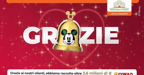 BOLOGNA - Conad annuncia la raccolta di oltre 3,6 milioni di euro a favore di 27 ospedali e reparti pediatrici italiani, a seguito dell'iniziativa "Facciamo sentire il nostro amore" attiva nel periodo natalizio dello scorso anno. Questo risultato rappresenta il valore più alto mai raggiunto nelle cinque edizioni del progetto, dal 2021 ad oggi, portando la raccolta complessiva a oltre 11,5 milioni di euro. Ciò è stato possibile grazie alla straordinaria generosità dei clienti Conad, che anche quest'anno hanno sostenuto l'iniziativa collezionando le campanelle di Natale ispirate ai personaggi più amati dei film d'animazione Disney, una linea di 13 soggetti realizzati in plastica riciclata (ABS). Durante l'operazione, ogni 15 euro di spesa, con un 1,90 euro in più, i clienti Conad potevano ricevere una campanella di Natale e devolvere 50 centesimi in beneficenza. "Lo scorso anno erano stati raccolti 2,2 milioni di euro, quest'anno 3,65, con un incremento del 65%. Un risultato che ci rende particolarmente orgogliosi perché testimonia la forza della solidarietà e il legame profondo tra Conad e le Comunità in cui operiamo. Con "Facciamo sentire il nostro amore" rinnoviamo un progetto che, anno dopo anno, porta vicinanza e sostegno concreto a chi lavora ogni giorno nelle strutture sanitarie dedicate ai più piccoli e alle famiglie che affrontano momenti difficili" - dichiara Francesco Avanzini, Direttore Generale di Conad. "In cinque anni abbiamo raccolto oltre 11,5 milioni di euro: un traguardo reso possibile grazie alla generosità dei nostri clienti e all'impegno quotidiano delle cooperative, dei soci e del personale dei punti vendita, che credono nel valore di questa iniziativa. È un risultato che ci spinge a continuare su questa strada, investendo nel futuro dei bambini e nel benessere dei territori". L'iniziativa rientra nel grande progetto di sostenibilità di Conad "Sosteniamo il futuro", basato su tre dimensioni fondamentali dell'agire quotidiano dell'insegna: rispetto dell'ambiente, attenzione alle persone e alle comunità, valorizzazione del tessuto imprenditoriale e del territorio italiano. -foto ufficio stampa Conad- . mgg/com 27-Gen-26 15:21