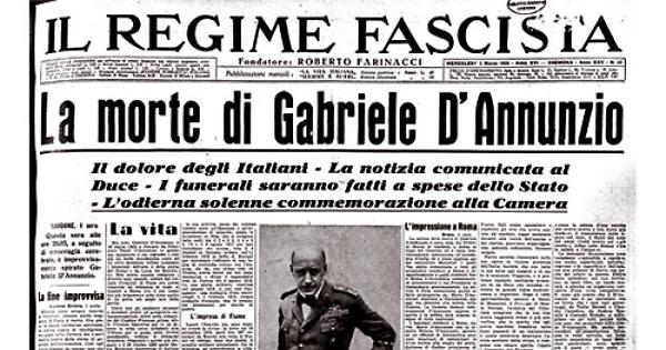 Silenzio come sempre intorno al Vittoriale, silenzio anche, maggiore. Il Poeta, a seguito di eniorragia cerebrale, è improvvisamente spirato