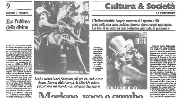 L'«Angel o Azzurro» è morto nella sua abitazione parigina «distesa nel suo salone, circondata dalle foto dei suoi amici sul muro, in una bellissima giornata di primavera». Con queste parole ha dato l'annuncio il nipote Pierre Riva. Si suppone che l'attrice avesse 91 anni, ma c'è chi sostiene che foss e nata nel 1904 o nel 1902. Un altro dei fascinosi misteri di cui si circondava. A Parigi viveva in Avenue Montaigne, la via più elegante della capitale, tra la Senna e gli champs Élysèes. Era arrivata nella capitale francese nel 1976, stanca di New York e del suo appartamento di Park Avenue.