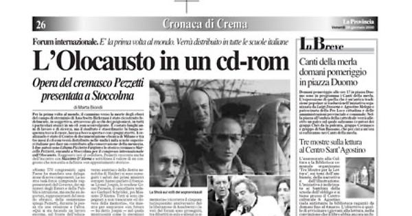 L’Olocausto in un cd-rom. Forum internazionale. E’la prima volta al mondo. Verrà distribuito in tutte le scuole italiane. Opera del cremasco Pezzetti presentata a Stoccolma.