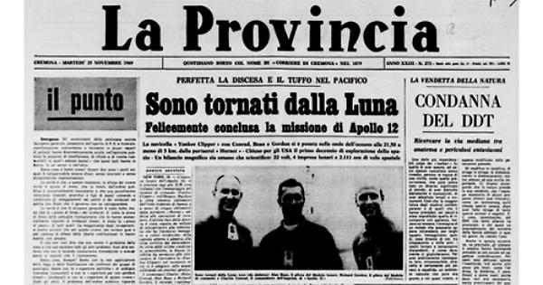 La navicella « Yankee Clipper » con Conrad, Bean e Gordon si è posata sulle onde dell'oceano alle 21,58 a meno di 5 km. dalla portaerei « Hornet » - Chiuso per gli USA il primo decennio di esplorazione dello spazio - Un bilancio magnifico sia umano che scientifico: 22 voli, 4 imprese lunari e 2.111 ore di volo spaziale
