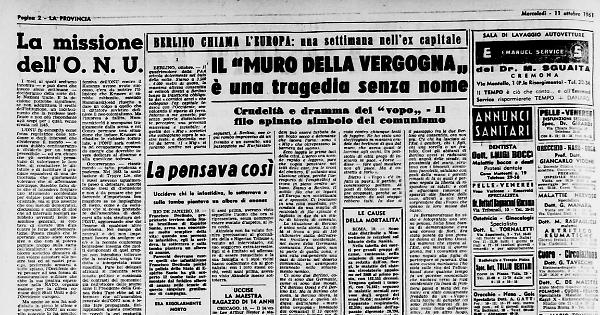 Sono stato a Berlino otto giorni. L'autunno era mite, il cielo azzurro, il sole splendido. La città era gaia e spensierata, quasi volesse affogate la sua malinconia e la sua disperazione in una gioia sfrenata. Berlino affronta il suo destino con sereno stoicismo. La vita continua normale. La gente è tranquilla. Il nervosismo che serpeggia in alcuni ambienti industriali ed economici è l'unico segno premonitore delle incognite del futuro. I berlinesi dicono che la guerra per Berlino è già cominciata e che l'Occidente ha perduto la prima battaglia, alludendo al muro di cemento eretto dai comunisti fra i due settori di Berlino. Chiediamo: «Se gli americani il 13 agosto avessero abbattuto la barriera di filo spanato, l'Armata rossa sarebbe intervenuta?». C’è chi risponde di sì e chi si dice convinto del contrario. Ma, intanto, mentre gli americani stavano a guardare, il muro è stato alzato e fortificato e i berlinesi dell'Est sono rimasti chiusi in gabbia.
