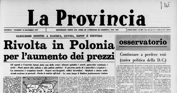 «Gli anarchici, i teppisti e i nemici del socialismo», ha detto Cyrankiewicz, hanno anche sparato, a Gdansk e a Gdynia, contro i soldati e la polizia nelle cui file i feriti sono numerosi.