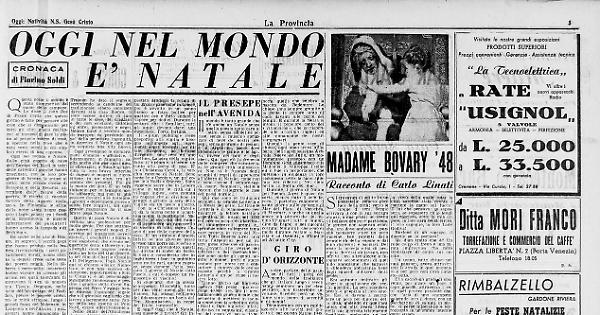 Per un giorno almeno tutto il mondo parla il medesimo linguaggio. Dalle prigioni, dai fronti delle guerre, dagli ospedali, tutti ascoltano qualcosa che è rimasto nel ricordo come una dolce nostalgia. Ogni famiglia ha un suo mondo da vivere, i sudi morti dà ricordare, una sua speranza da fortificare. Oggi è Natale. Ogni prese ha le sue tradizioni. Ogni chiesa i suoi canti. Ogni famiglia il suo semplice rito. In Italia il Natale, da secoli continua a ritornare coi suoi motivi che ancora nascono dalla tradizione dei presepi, dalle campane di S. Pietro, dalla letterina sotto il piatto del papà, dalla cartolina di auguri agli amici, dal cappone e dal «bisett», dal torrone e dalla mostarda.