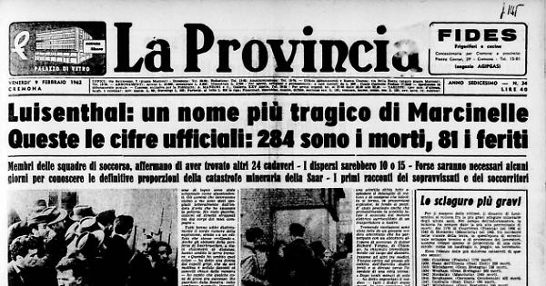 Anche un altro giovane minatore, che non ha voluto rivelare il suo nome si è salvato allo stesso modo riparandosi dietro una grossa trave. «Per prima cosa — ha detto — la tremenda pressione dell'aria mi ha scaraventato contro la parete della galleria. Poi è arrivata una fiammata, lunga almeno cento metri, che è guizzata davanti a me, che mi ero nascosto dietro una trave. La potenza dello scoppio è stata tremenda. Parecchie traversine di legno sono state schiantate come stuzzicadenti. Gli uomini che lavoravano vicino a me sono stati spogliati letteralmente dall'ondata d'aria che ha spazzato la galleria. Ho visto giacche, calzoni ed elmetti strappati via dai corpi dei miei compagni».