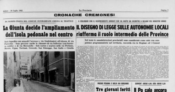 L'isola pedonale in piazza del Comune entra in vigore; il provvedimento è stato assunto per evitare che i veicoli attraversino il centro storico per recarsi da porta Po a porta Venezia ed a porta Romana e viceversa.