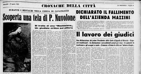 Una tela raffigurante «La Maddalena», attribuibile a Panfilo Nuvolone, è stata «scoperta» nella chiesa di Cavatigozzi nel corso dei recenti restauri. Si tratta di un avvenimento artistico di notevole interesse.