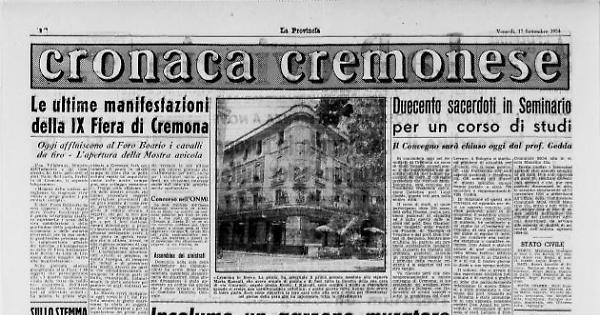 «La Provincia» ha rilevato negli scorsi giorni una inesattezza nello stemma della città riprodotto in mosaico al centro della Galleria XXV Aprile. È da rilevarsi che il 22 agosto 1942, usciva un decreto nel quale era disposto: «Spettare alla Città di Cremona il diritto di fare uso dello stemma miniato nel foglio qui annesso, che è: Partito: al primo fasciato di rosso e argento; al secondo di nero al braccio vestito di rosso e d'argento stringente nella mano una palla d'oro. Capo del Littorio di rosso (porpora) al Fascio Littorio d'oro circondato da due rami di quercia e d'alloro annodati da un nastro dai colori nazionali. Corona gemmata a cinque fioroni». La miniatura dello stemma unita al decreto non corrisponde però alla descrizione fattane nel decreto, stesso, infatti, anziché essere «fasciato di rosso e argento» è un «campo rosso con tre fascie d'argento».