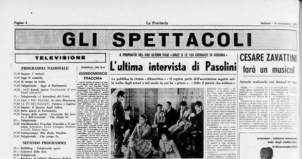 È stata curata da Gideon Backman e Donata Gallo, i quali hanno conversato con il regista e scrittore scomparso principalmente circa la sua ultima e ancora inedita fatica «Salò o le 120 giornate di Sodoma».