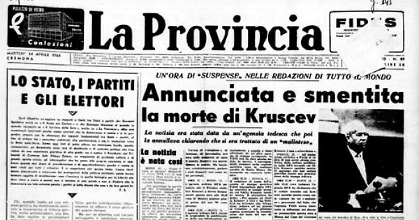 «Un malinteso in merito ad una interruzione, apparentemente inspiegabile, nella diffusione, da parte dell’agenzia sovietica TASS, di un discorso del Presidente Kruscev ha provocato questa sera voci sulla morte del Capo del Governo e del partito sovietico. In effetti, un giornalista giapponese accreditato a Mosca ha chiesto all'agenzia TASS la ragione per quale il bollettino d'informazioni in lingua inglese della TASS era stato interrotto, questa sera, durante la trasmissione di un discorso di Kruscev. A quanto sembra il giornalista non ha capito bene la risposta datagli in russo. Il corrispondente della DPA a Mosca dichiara che nel momento in cui il giornalista giapponese aveva fatto la sua domanda alla TASS la trasmissione del discorso di Kruscev da parte del servizi in lingua russa dell'agenzia TASS era già terminata. Tuttavia la trasmissione del discorso nel servizio in lingua inglese non era ancora terminata.