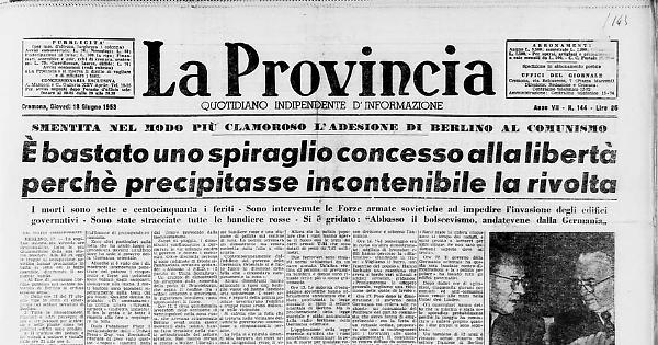 Ore 8. La polizia comunista, armata di sfollagente, tenta di respingere una folla di quindicimila dimostranti anti-comunisti, che, riunitisi rapidamente in cortei nelle prime ore del mattino, hanno marciato verso la sede del governo comunista a Berlino-est ed hanno poi tentato di invadere l'edificio governativo con la forza. Intanto reparti di soldati russi, montati su autocarri, sono stati fatti affluire a Berlino- est e dislocati per le vie principali per ogni evenienza. La polizia orientale è intervenuta decisamente e facendo uso degli sfollagente è riuscita a respingere la folla scatenata.