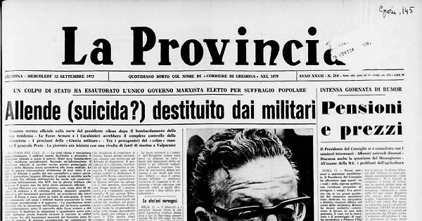 L’informazione, non confermata ufficialmente, secondo cui il Presidente cileno si sarebbe ucciso, viene accolta con molto riserbo. Tutta l’informazione cilena è ormai sotto controllo militare e le radio, unico veicolo di notizie sul Cile, non hanno più menzionato il nome di Allende dopo l’annuncio della sua «resa» e della sua detenzione.