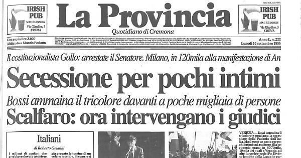 Scalfaro sulla secessione: l'unità garantita da 50 milioni di italiani. Il capo dello Stato a Bari chiede la fermezza necessaria, ma anche grande serenità per non essere travolti dalla paura del pericolo separatista. «La democrazia non deve temere di far ricorso ai giudici in caso di violazioni»
