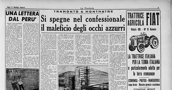 È qui, su questo altipiano che passa la ferrovia più alta del mondo a 4835 metri sul livello del mare; ferrovia costruita dagli inglesi e che rappresenta un capolavoro di ingegneria per i suoi ardui passaggi sopra burroni profondissimi. Il punto di maggior altitudine della ferrovia è a Ticlio, a 140 ck da Lima; è qui che mi sono fatto fotografare assieme al mio amico americano Mc Milland con la Provincia in mano. Che questo sia un augurio di un sempre miglior avvenire per il giornale di Cremona.
